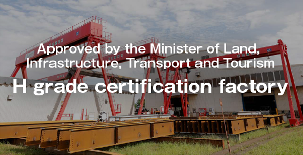 Steel frame manufacturing factories have a certification system that classifies them into five grades (S, H, M, R, J) according to the building scale and the steel materials used. Itagaki Corporation has received "H grade certification" from the Minister of Land, Infrastructure, Transport and Tourism out of this 5-level evaluation. Itagaki provides customers with safe and secure products based on H-grade technology and quality.
