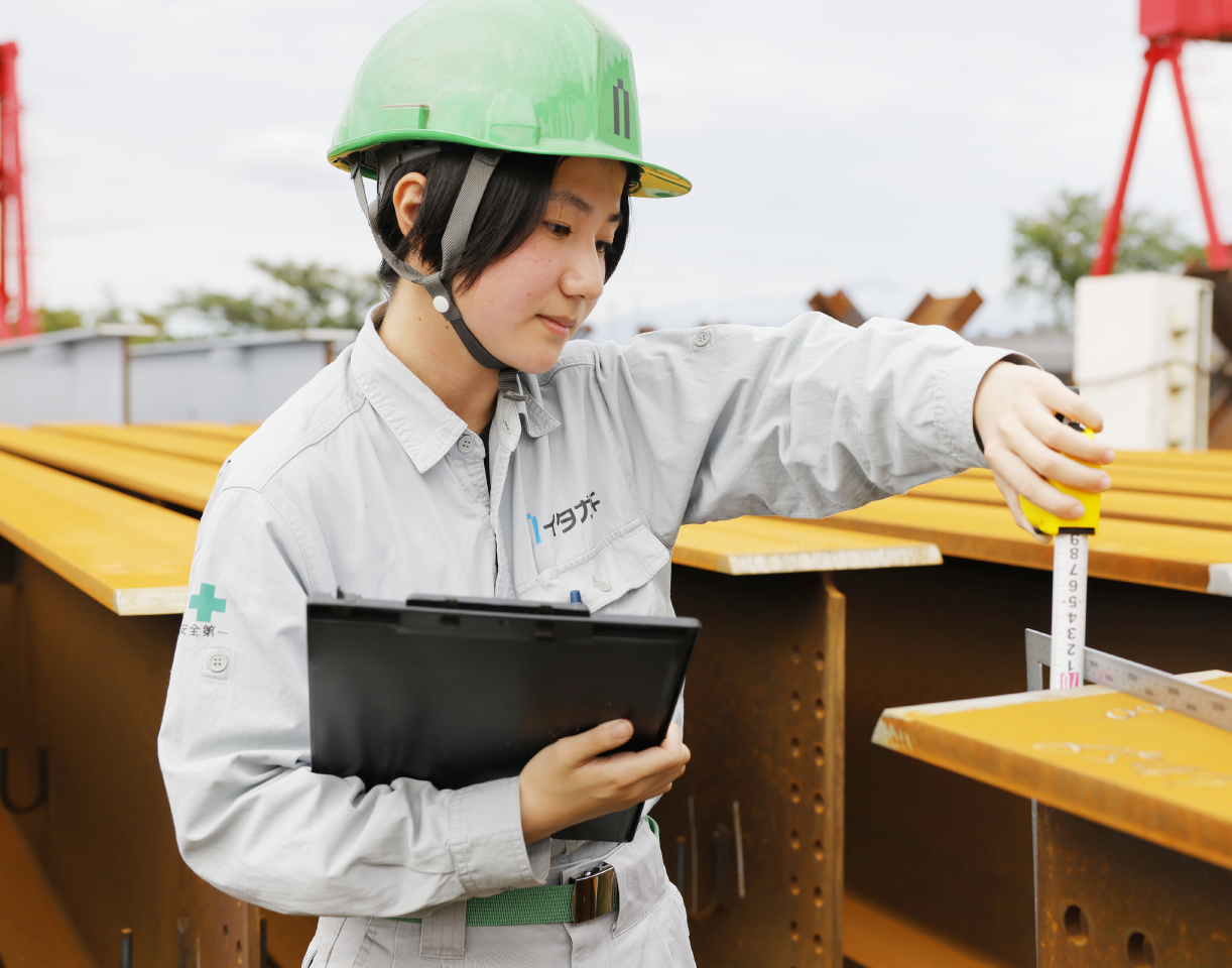 When defects are found during product inspections, there are occasions when the customer directly criticizes us. When I overcame all of them and received the words "Please again" from the customer, I felt deeply moved. Also, when I saw the steel frame of the project I had been involved in since joining the company, I felt an indescribable sense of accomplishment. While feeling worthwhile every day, I work hard with my boss's words, "Let's do what I can do now."