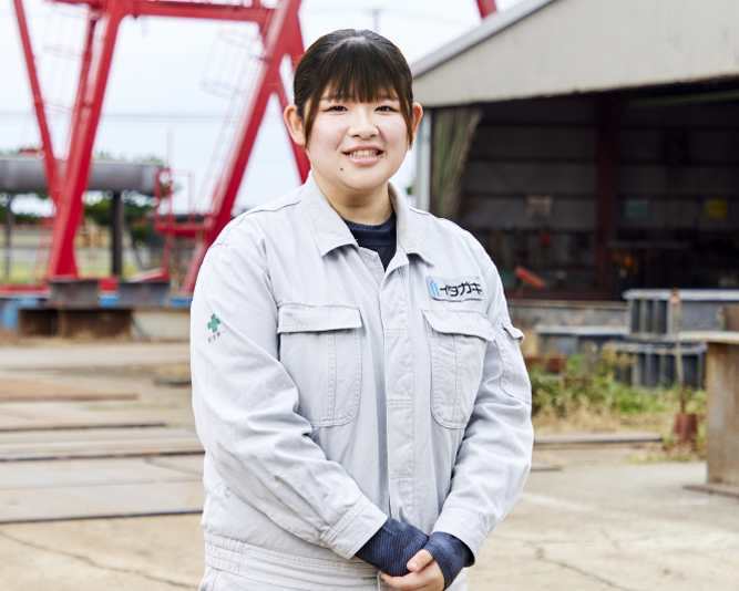 When I was about to graduate from high school and was having a hard time finding my dreams and goals for the future, I attended a company social event held at my school. When I happened to talk with Itagaki employees there, I was impressed that I was not nervous at all and could enjoy talking with them as myself. Later, during a company tour, I was exposed to the friendly atmosphere in the company and thought, “I want to work here. I was a little worried because there were many older employees in my welding group, but they taught me everything carefully, and my worries were quickly put to rest.